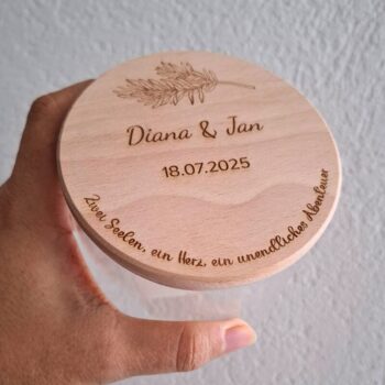 - Personalisierte Geschenke: Von gravierten Bilderrahmen, die die schönsten Hochzeitsmomente einfangen, bis hin zu massgeschneiderten Holz- oder Glasobjekten mit Gravur – unsere personalisierten Geschenke schaffen bleibende Erinnerungen.