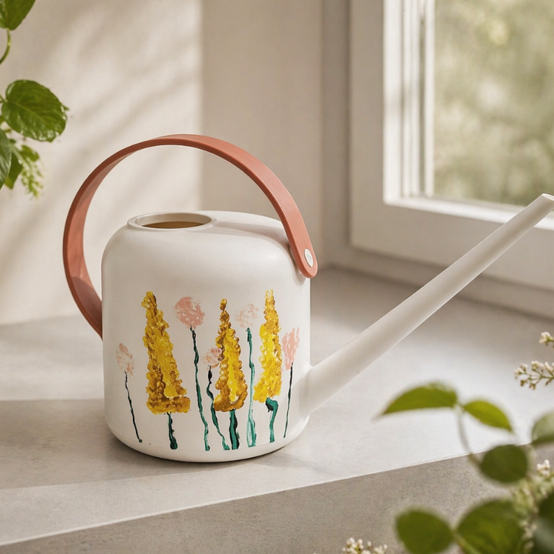 Durch die Nutzung im Innenbereich bleibt die Giesskanne im Alltag sichtbar, beispielsweise bei Zimmerpflanzen. So verbindet sie kreative Erinnerung mit praktischer Anwendung.