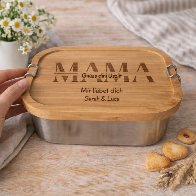 Personalisierte Lunchbox mit Gravur – Geschenk für Mama zum Muttertag