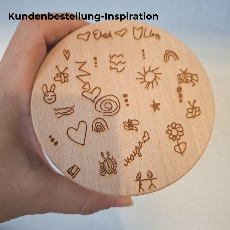 Kinderzeichnungen sind mehr als bunte Striche – sie spiegeln Gefühle, Fantasie und Erinnerungen wider. Graviert auf Holz bleiben diese einzigartigen Kunstwerke nicht nur erhalten, sondern werden zu einem Geschenk, das Emotion und Funktion vereint.